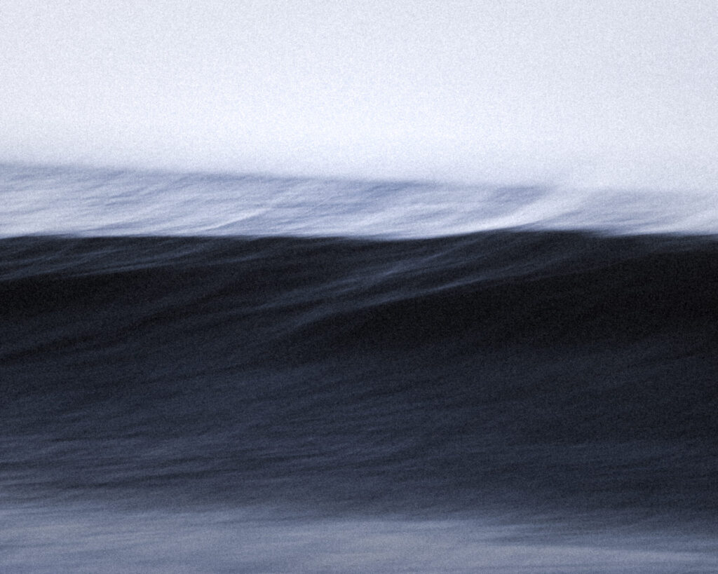 Through intentional movement of the camera at the moment of capture, paired with the natural motion of the sea, the images reveal an interplay of contrasts, lines, shapes and a delicate tension between points of light. The sense of movement that permeates many of the exhibited works emerges from the photographer’s prolonged interaction with the subject (element). Time itself becomes a medium, translating motion into a painterly gesture—akin to a brushstroke across canvas. The seascape that remains is abstract – still shimmering.